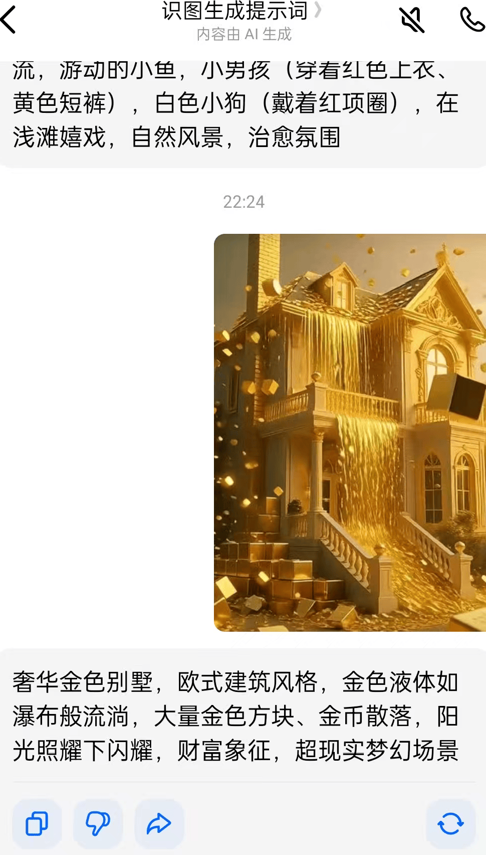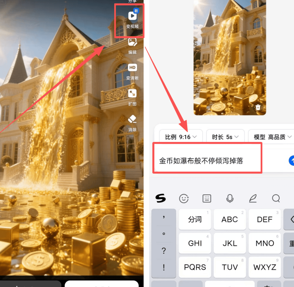 别自己瞎琢磨提示词怎么写,太浪费时间。你直接去抖音刷,看到哪条招财类视频火了,立刻截图。然后把截图放进刚才的识图功能里,AI就会给你输出完整的提示词,复制出来就搞定,前后不超过一分钟。