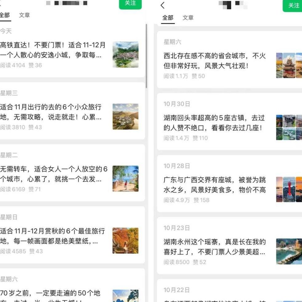 今天我们来聊聊公众号旅游赛道这个项目。从表面看,这是一个通过旅游攻略图文赚取流量主收益的热门领域,文章确实容易获得高流量,但作为一个习惯先关注风险的人,我有必要把这背后的门道梳理清楚。