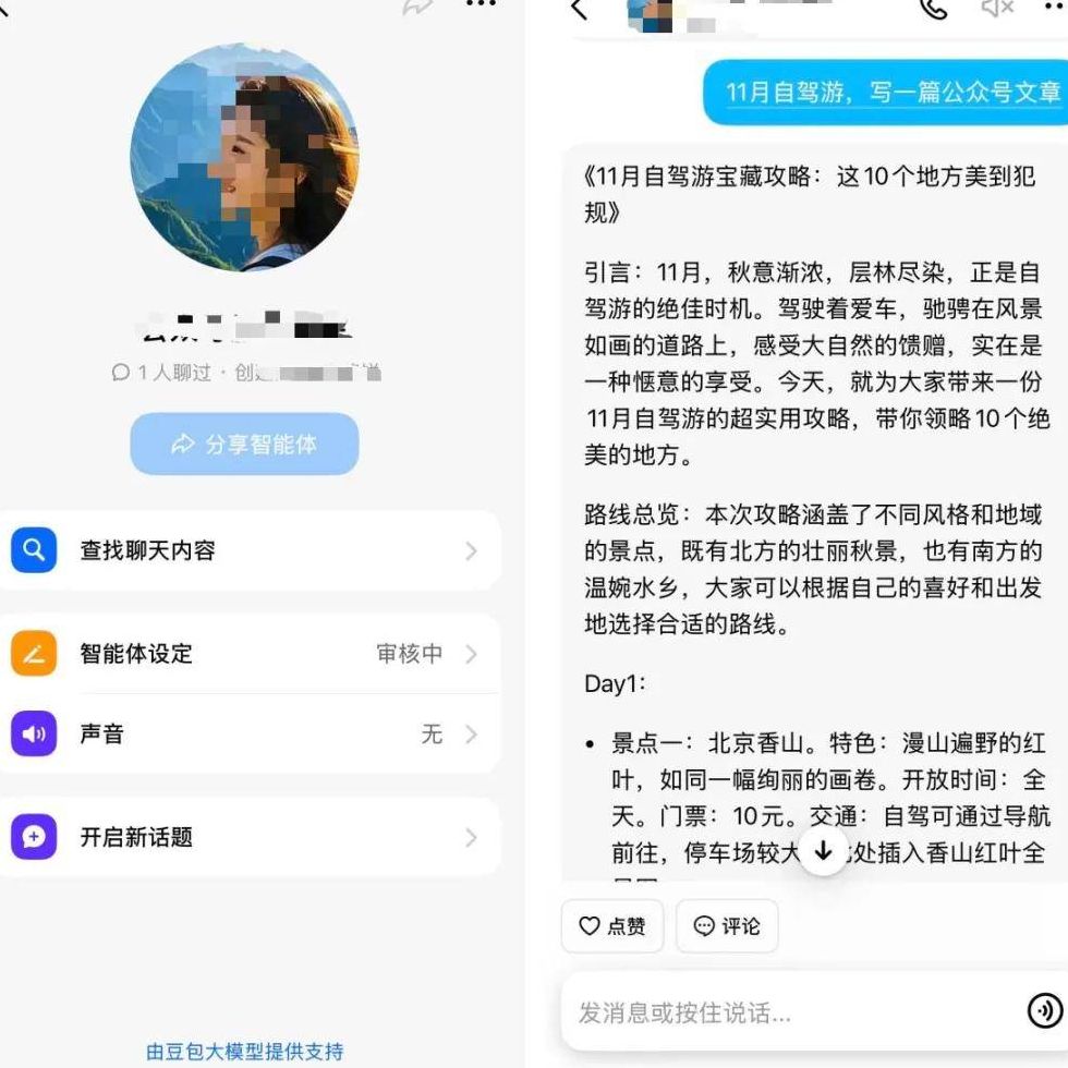 为了规避内容质量不稳定的问题,我调试出了一款豆包智能体。你把主题输入给它,它能生成结构较为严谨的公众号文章,从而保证我们输出的稳定性。