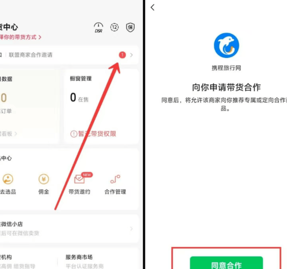 绑定完成后,你的视频号私信会收到一条携程网发来的带货合作邀请,点击「同意」就搞定了。