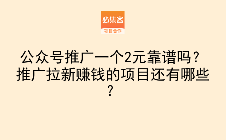 公众号推广一个2元靠谱吗?推广拉新赚钱的项目还有哪些?