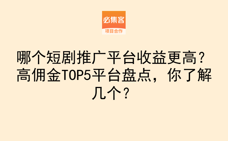 哪个短剧推广平台收益更高?高佣金TOP5平台盘点,你了解几个?