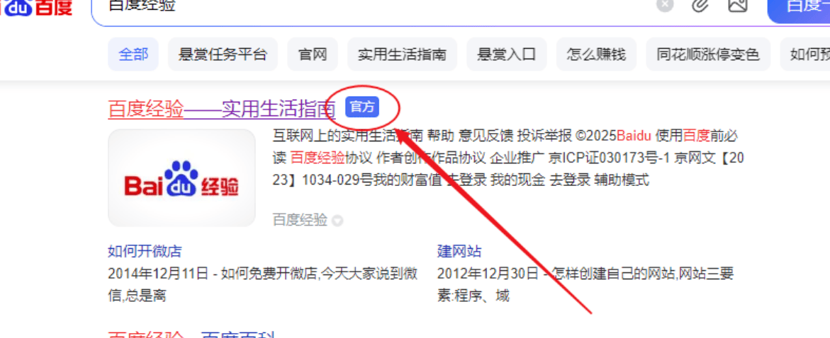 首先打开百度,搜索“百度经验”,找到带官方标识的链接点进去就可以了。