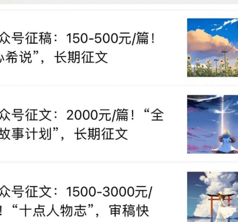一般来说,公众号投稿的稿费在 200 - 300 元一篇,字数要求大概 1000 字左右,还有些是按字数计费,100 - 300 元 / 千字。别觉得投稿赚稿费有多高大上,哪怕你自认写作水平一般,也完全可以参与。