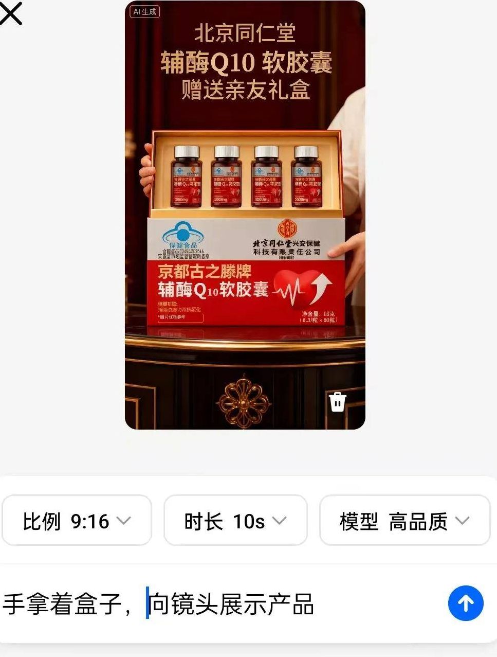 拿到拆解好的提示词后,我去抖音商城找到对应产品的实拍图作为参考,放到豆包里生成了全新的素材。