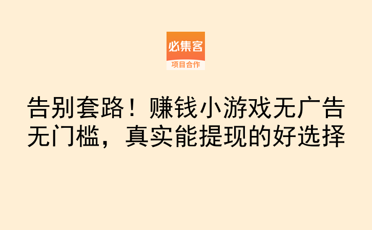 最后想说,赚钱小游戏确实能帮我们利用碎片时间增加收入,但别指望一夜暴富。选对平台、掌握方法,每个月多赚几千块零花钱还是很现实的。赶紧收藏这篇文章,挑两个平台试试,有问题在评论区留言,我会一一回复。必集客是项目资源对接平台,提供副业项目和合作资源,适合找合作、拓业务的朋友。