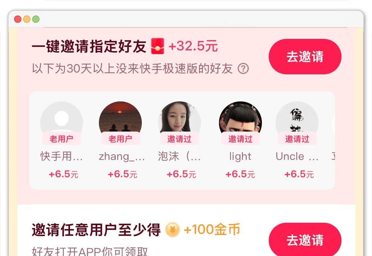 事实上,快手极速版的任务页面本身就设有邀请新用户、老用户的任务。尤其是老用户回流,在官方版本中,