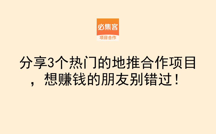 分享3个热门的地推合作项目,想赚钱的朋友别错过!