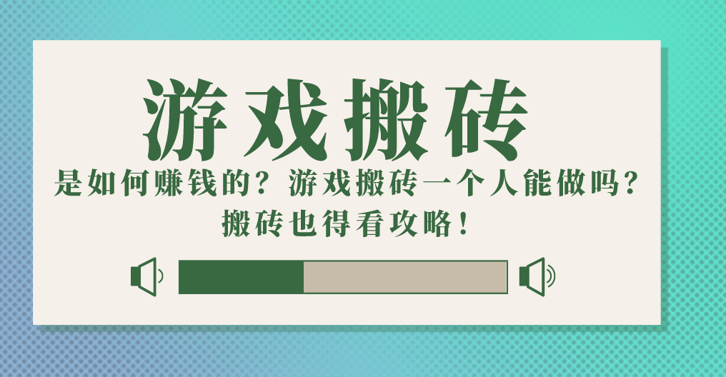 游戏搬砖如何赚钱?一个人能做吗?搬砖需看攻略!