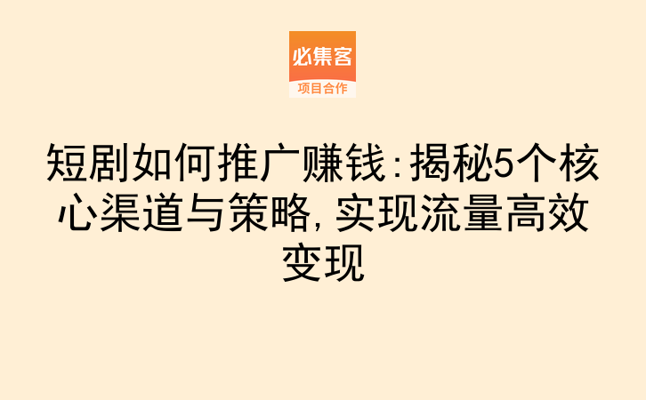 短剧如何推广赚钱:揭秘5个核心渠道与策略,实现流量高效变现