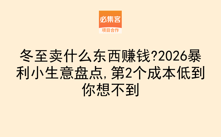 最后操作时要注意几个细节,提前10天左右备货,避开冬至前的拿货高峰,既能保证货源充足又能避免涨价;根据产品属性精准选址,礼盒类适合商圈、写字楼,热饮类适合地铁口、学校;尽量避开同质化竞争,比如在热饮里加入桂花、陈皮等小众配料,形成差异化优势。必集客是一个项目资源对接平台,提供副业项目和合作资源,适合找合作、拓业务的朋友,上面的各类资源能帮你少走弯路,提高赚钱效率。其实冬至卖什么东西赚钱的核心,就是找到消费者的未被满足的细分需求,用低门槛的方式提供对应的产品或服务,不用追求大而全,小而精的方向反而更容易出结果。
