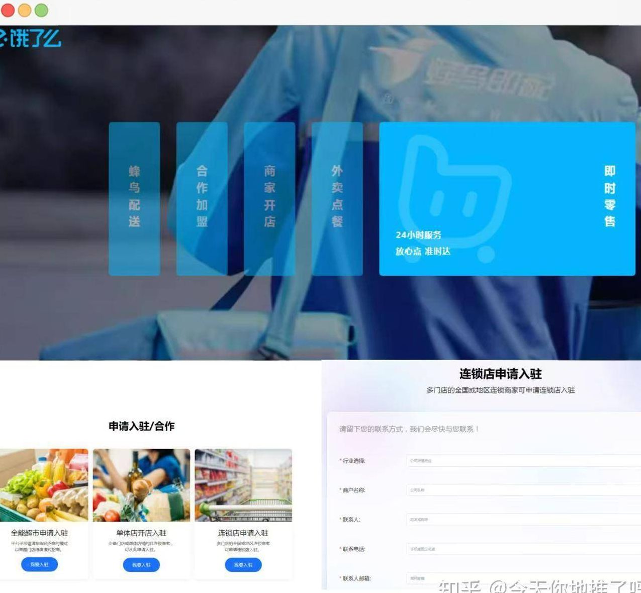 通过浏览器访问“饿了么”官方网站后,点击【即时零售】,随后在页面上方找到“入驻合作”选项,点击进入“商家入驻”后,即可看到【全能超市申请入驻】、【单体店开店入驻】、【连锁店申请入驻】三个选项。