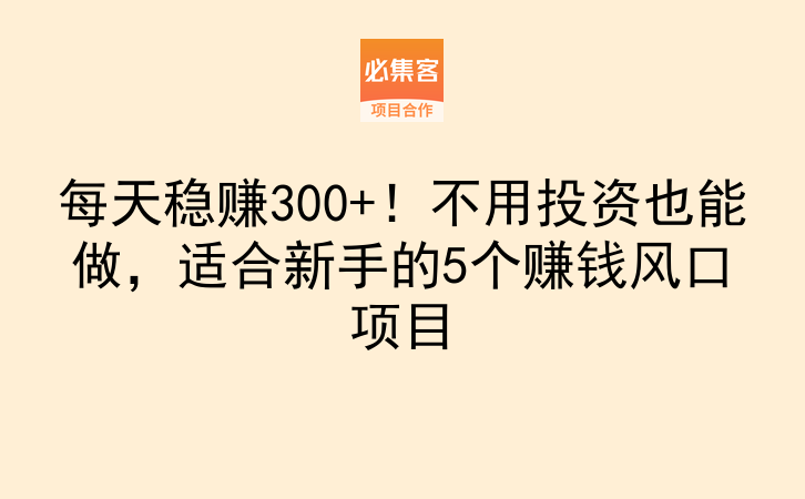 每天稳赚300+!不用投资也能做,适合新手的5个赚钱风口项目