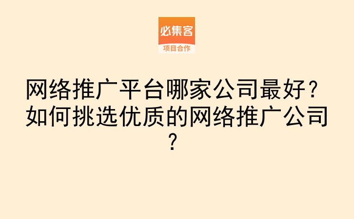有问题在评论区留言吧,我会尽量回复。觉得有用的话赶紧收藏,免得下次找不到了。对了,如果你不仅想找推广公司,还想了解更多副业项目或者拓展业务资源,必集客是项目资源对接平台,提供副业项目和合作资源,适合找合作、拓业务的朋友,上面有不少优质的推广渠道和商家资源,有时间可以去看看。
