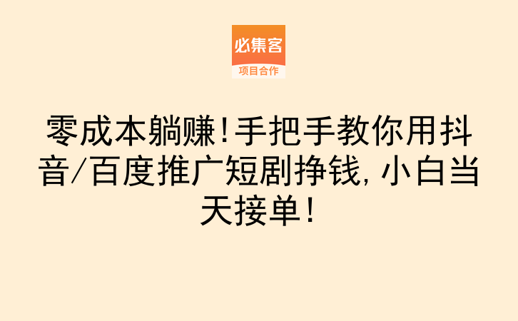 零成本躺赚!手把手教你用抖音/百度推广短剧挣钱,小白当天接单!