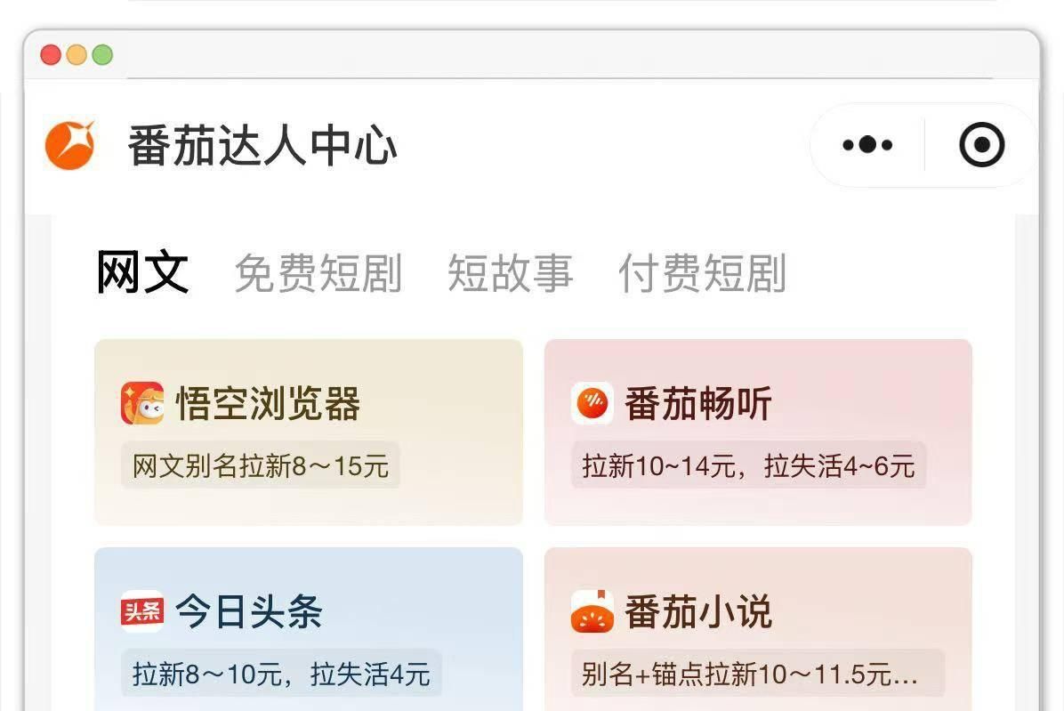 而番茄达人中心,正是专门对接小说推文和短剧推广的接单授权平台。