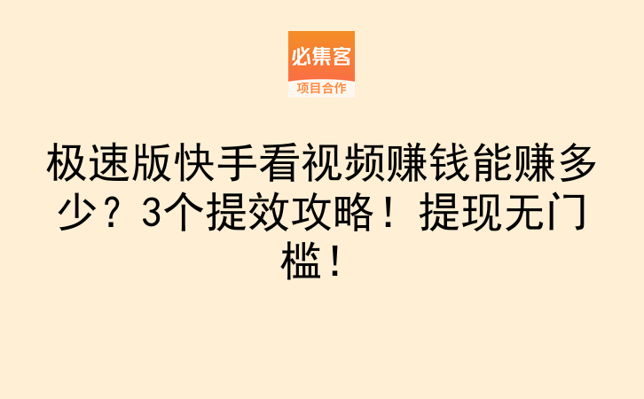 极速版快手看视频赚钱能赚多少?3个提效攻略!提现无门槛!