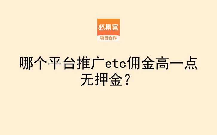 哪个平台推广etc佣金高一点无押金?