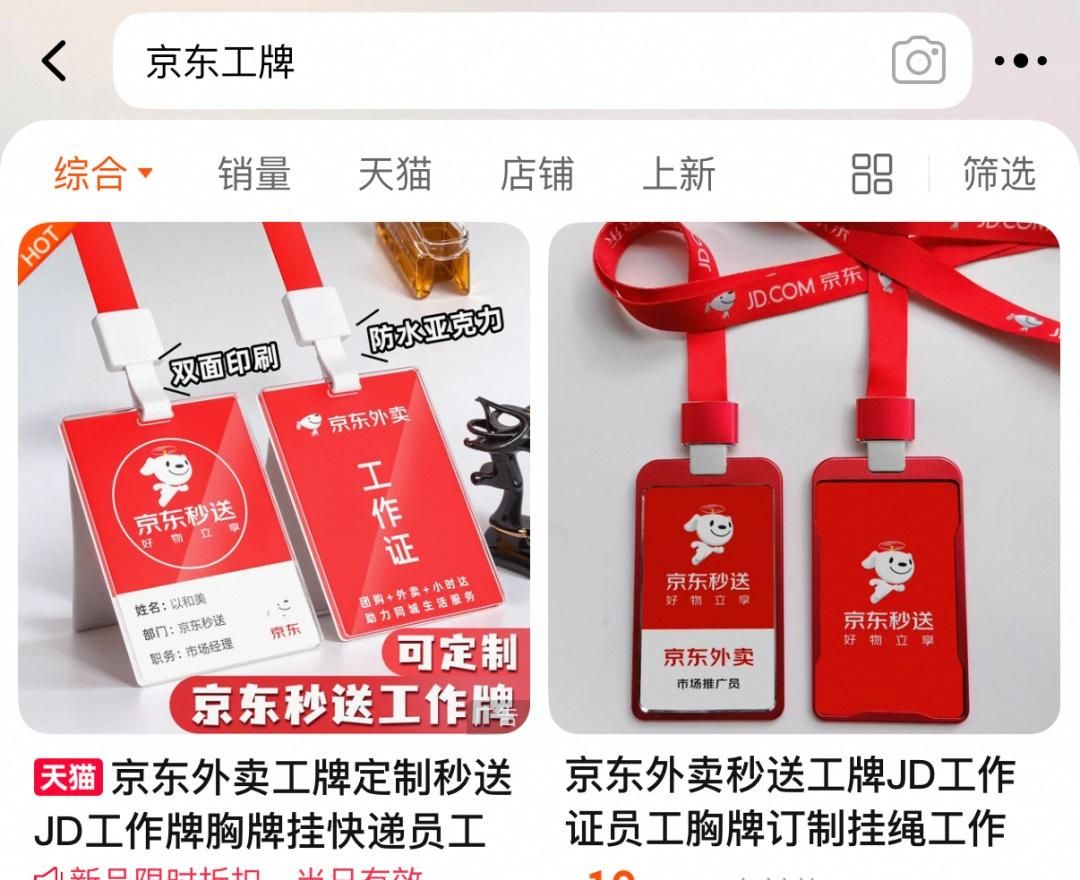 你可以去淘宝上搜索“京东工牌”,单价仅15元左右,既便宜又便携,能瞬间提升你的专业感。