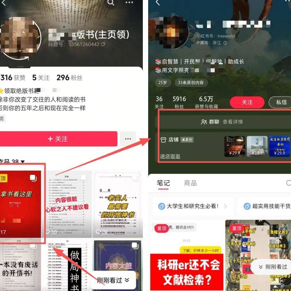 所谓绝版书,本质上就是已经停止印刷的书籍。这个项目的核心,是利用抖音、小红书这类平台发布书中节选内容,将目标用户引流至私域,最终销售打包好的电子版绝版书资源。