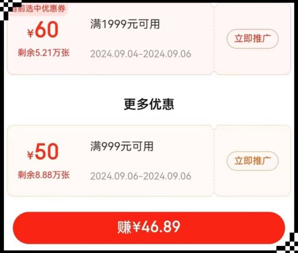 这类优惠券虽然是平台官方推出的,但只会定向发放给专属推广员,再由推广员分享给其他用户。只要有人领取并使用了你分享的优惠券,你就能获得对方消费金额一定比例的佣金。