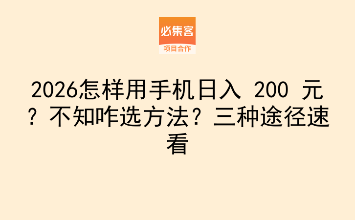 2026怎样用手机日入 200 元?不知咋选方法?三种途径速看