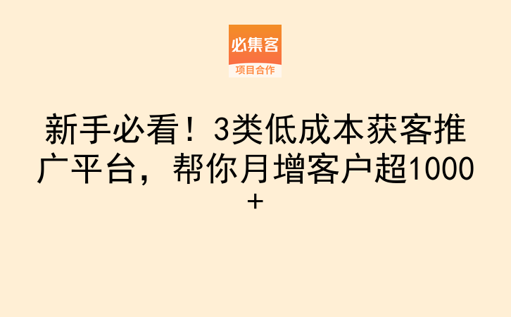 新手必看!3类低成本获客推广平台,帮你月增客户超1000+