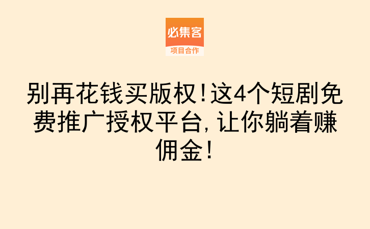 别再花钱买版权!这4个短剧免费推广授权平台,让你躺着赚佣金!