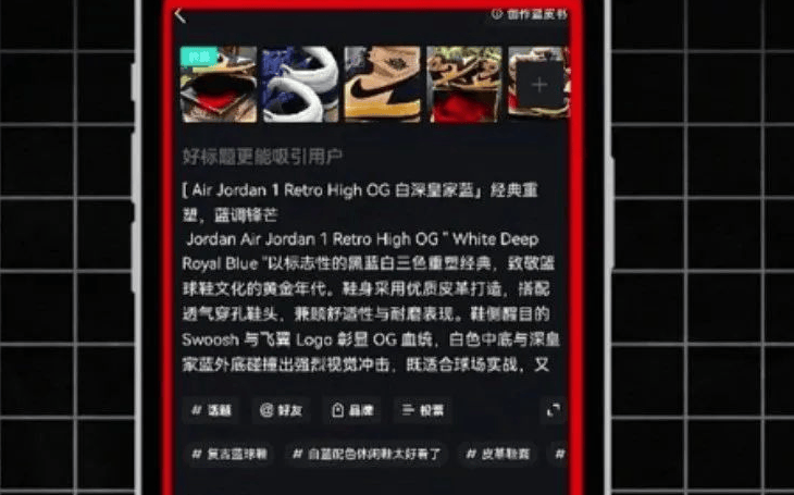根据DeepSeek推荐的爆款方向,到小红书搜索同款商品笔记,下载优质图片素材,文案通过AI工具进行差异化改写,避免与原内容重复。