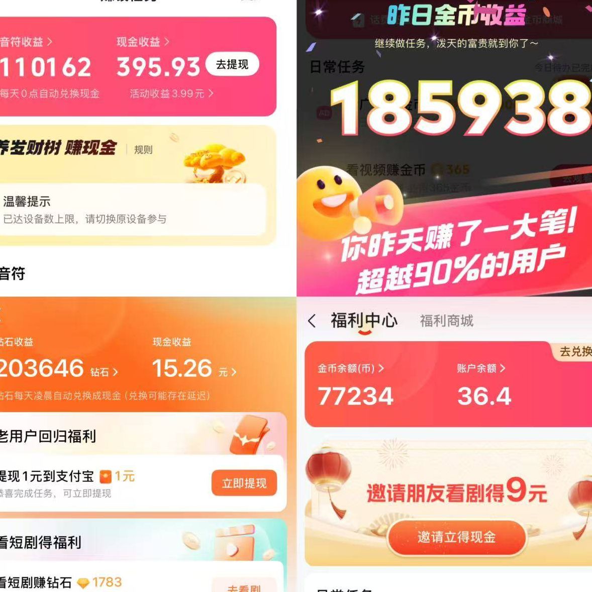 所谓的看广告赚钱,就是把市面上支持看视频、看广告赚收益的主流APP,比如抖音极速版、快手极速版、番茄小说、红果短剧、番茄畅听音乐版、河马剧场等等,全部下载下来做一遍任务。