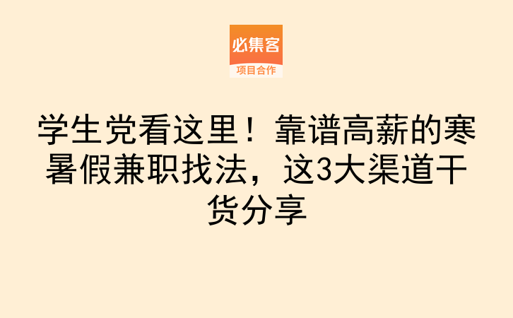 学生党看这里!靠谱高薪的寒暑假兼职找法,这3大渠道干货分享
