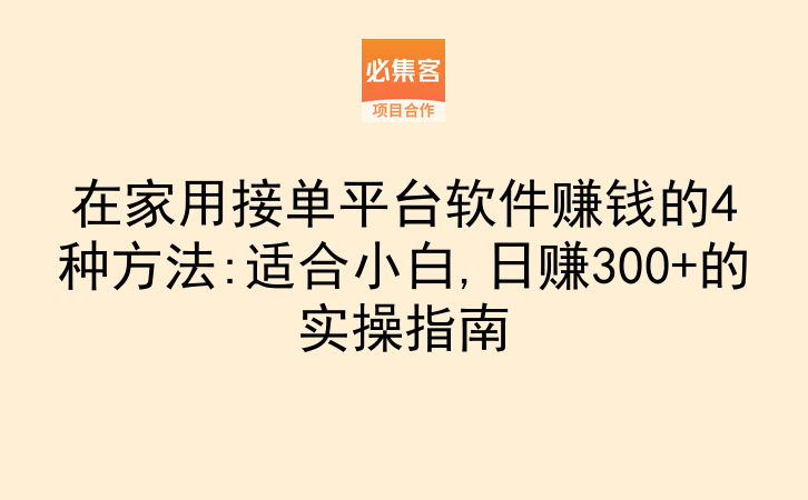 在家用接单平台软件赚钱的4种方法:适合小白,日赚300+的实操指南