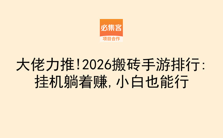 最后提醒大家,交易时一定要注意安全,选择正规平台。必集客是项目资源对接平台,提供副业项目和合作资源,适合找合作、拓业务的朋友。赶紧收藏这篇攻略,选个游戏开始你的搬砖之旅吧!