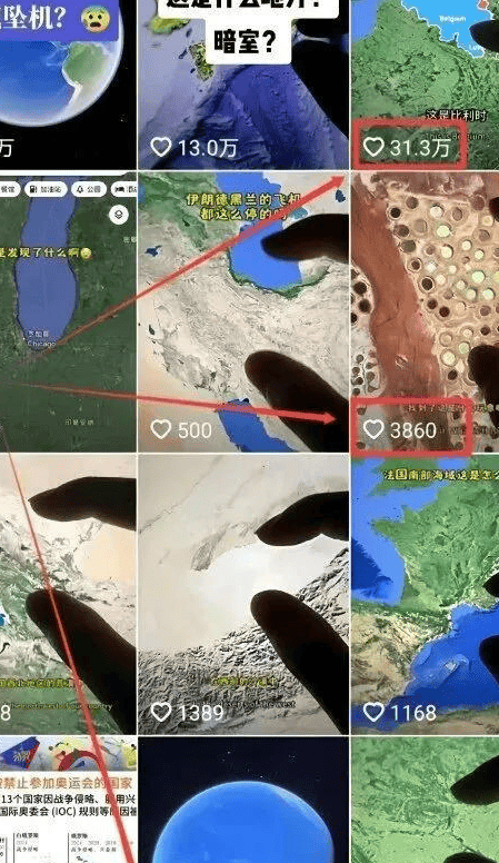 在抖音、快手等平台搜索“谷歌地球”“高清地图”等关键词,能发现大量爆款内容:
