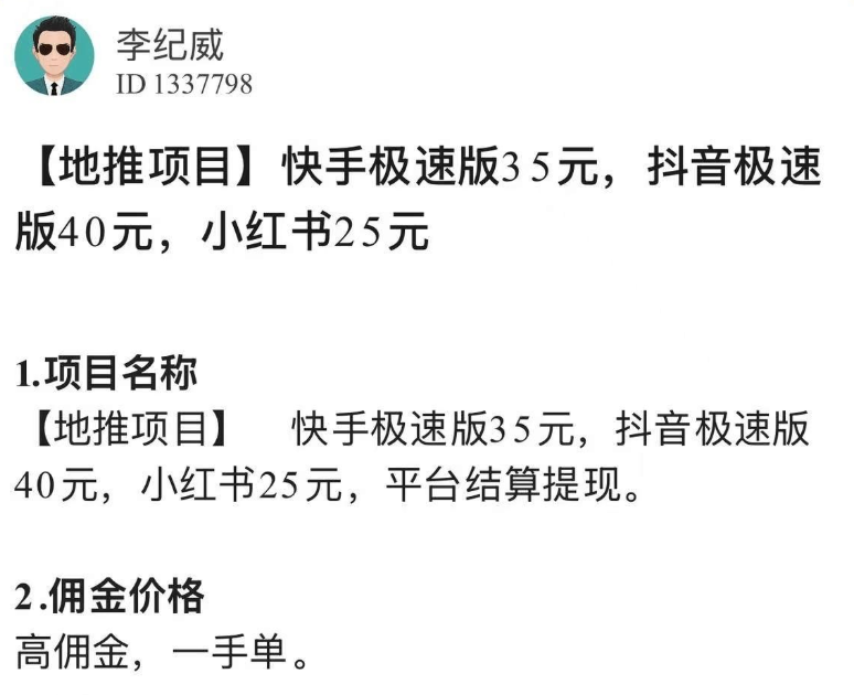 你去“必集客APP”这类拉新推广一手接单平台接单,每成功推广一个抖音极速版、快手极速版新用户,佣金大概在40元左右。