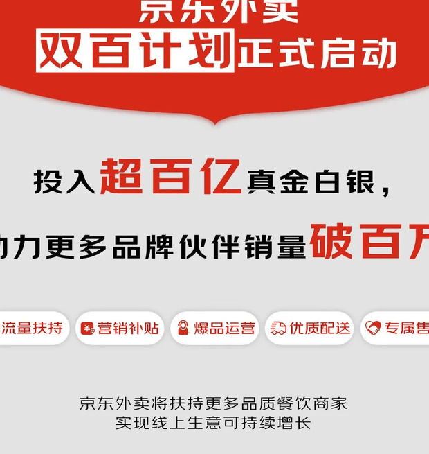 显然,这与美团、淘宝闪购仍有不小差距,因此京东外卖推出“双百计划”,投入超百亿元现金,助力更多品牌销量破百万。
