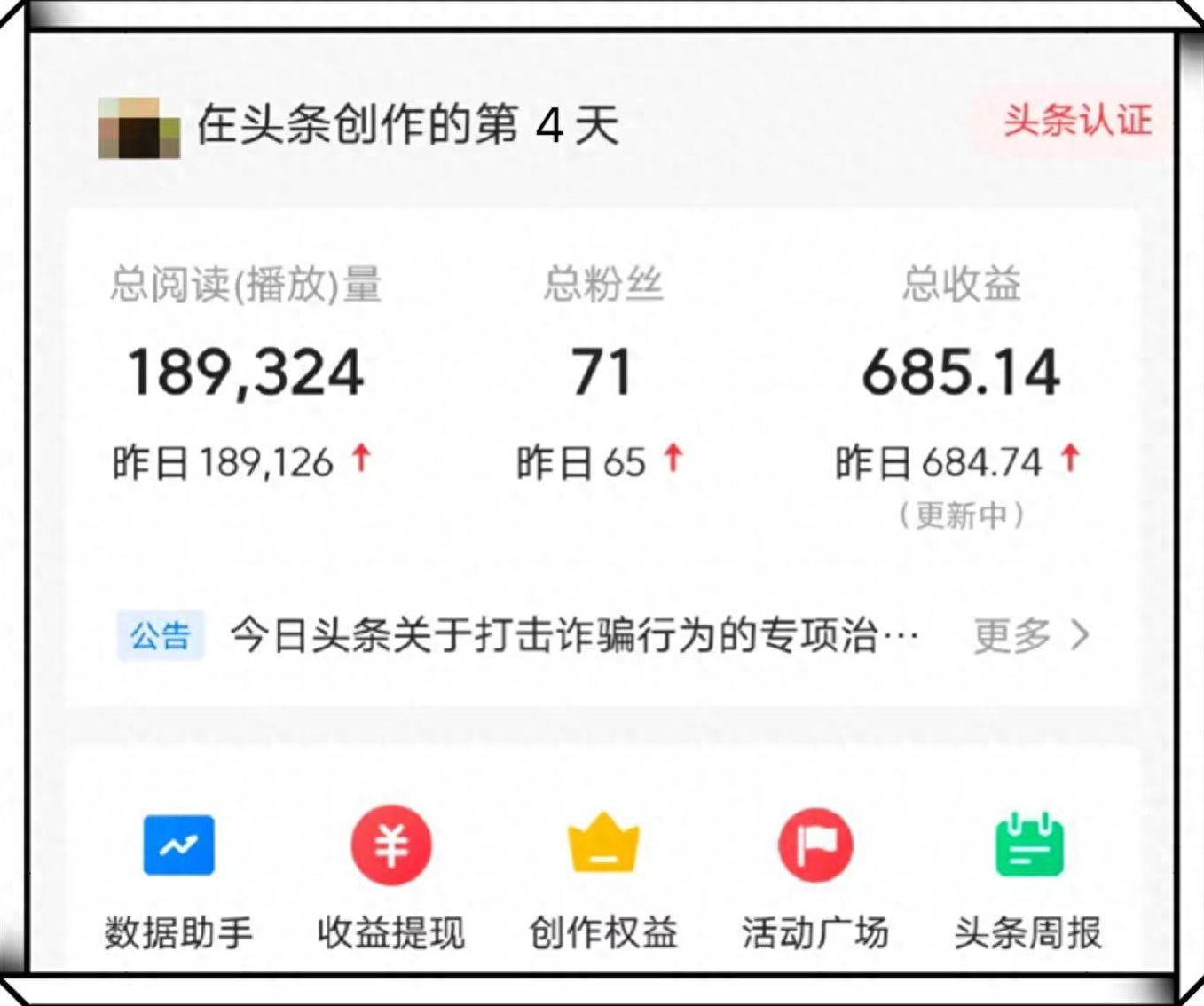 在众多自媒体创作平台中,今日头条的门槛应该是最低的,即使0粉丝也能开通收益权限。平时多写些幽默段子、情感故事,分享信息差赚钱项目,只要有阅读量就能有收益。就算你文笔不太擅长,也可以借助AI辅助工具,记得及时查重就行。