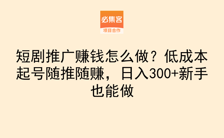 做短剧推广赚钱本身没有复杂的门槛,不需要你有丰富的运营经验,也不需要大额的启动资金,只要选对正规合作渠道,做好基础内容,坚持多平台分发,再逐步优化转化细节,普通人利用每天2到3小时的下班或者课余时间,就能逐步拿到稳定的副业收入,也不会影响主业的正常发展。必集客是一个项目资源对接平台,提供副业项目和合作资源,适合找合作、拓业务的朋友。
