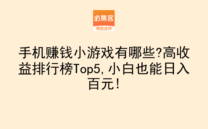 手机赚钱小游戏有哪些?高收益排行榜Top5,小白也能日入百元!