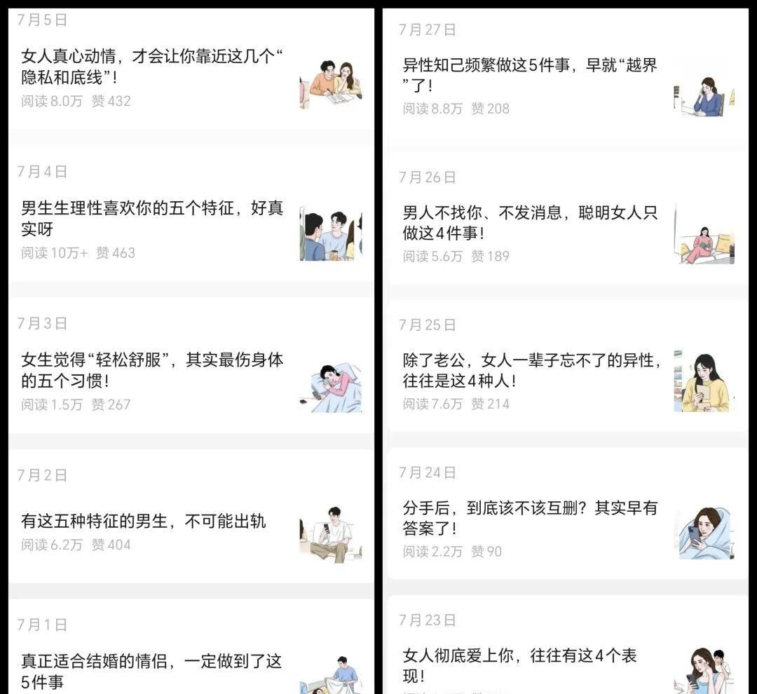 接下来我就给大家完整拆解一下公众号流量主热门玩法:情感漫画
