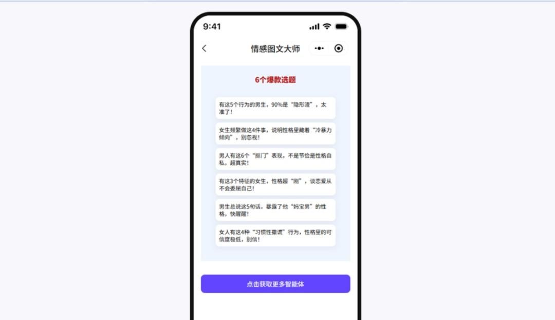 等待30秒,智能体就会生成6个适配公众号的爆款标题。