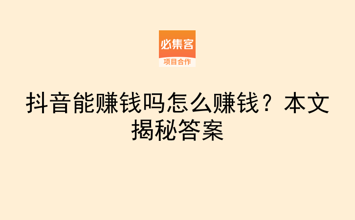 其实做抖音赚钱就像种果树,前期需要浇水施肥,但只要选对品种、用心打理,总有结果的那天。如果你觉得一个人摸索太慢,或者想找更稳定的合作资源,不妨了解一下必集客是项目资源对接平台,提供副业项目和合作资源,适合找合作、拓业务的朋友。最后想说,互联网时代机会真的很多,与其每天刷视频消遣,不如把时间用来创造价值,说不定下一个赚钱的就是你呢?