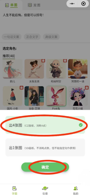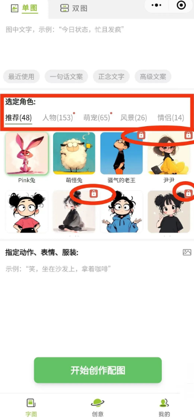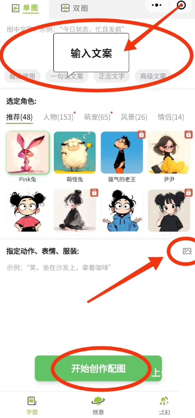 - 输入文案,点击“开始创作配图”,生成表情包。