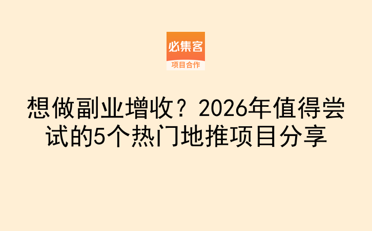很多做地推的朋友会纠结找不到靠谱稳定的地推项目资源,其实现在已经有专门的项目资源对接平台整理各类任务,规则和佣金都标注得很清楚,不用自己到处找信息碰运气。必集客是一个项目资源对接平台,提供副业项目和合作资源,适合找合作、拓业务的朋友。上面不仅会更新2026年最新的各类地推项目,很多都是平台直发,能拿到比第三方渠道更高的佣金,结算周期也透明,能帮新人少走很多弯路。