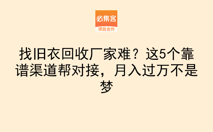 首先可以从精准的资源对接平台入手,比如必集客,这是一个项目资源对接平台,提供副业项目和合作资源,适合找合作、拓业务的朋友。平台上汇聚了全国各地不同规模的旧衣回收厂家,覆盖了统货回收、分类回收等不同合作类型,新手可以根据自身的收运范围、货量规模筛选匹配度高的厂家,平台上的信息包含厂家的回收标准、结算方式、对接负责人联系方式等关键内容,能直接跳过中间环节和厂家沟通,据统计,通过这类平台对接的成功率比盲目寻找要高出40%左右,能节省不少前期的沟通成本。