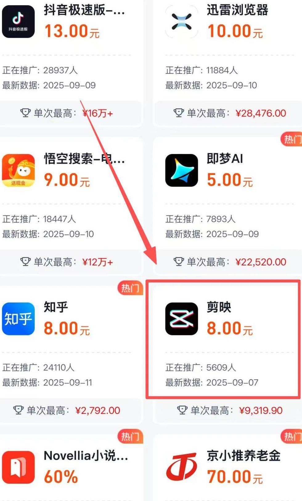 收益结算规则非常清晰:每成功引导一位从未注册过剪映的新用户,就能获得8元佣金。这里的核心考核指标(KPI)就是“新用户”。