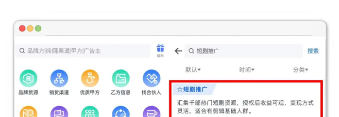 下载必集客APP之后,在搜索框输入“短剧推广”,就能直接进入专门的短剧推广专区了。