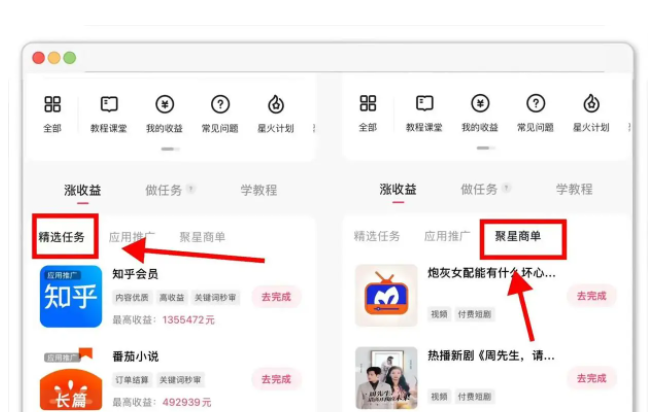 打开快影,找到“创作中心”入口,再点击“聚星商单”,里面就能找到现成的短剧推广项目。除了短剧推广,还有小说推文、知乎会员拉新这类项目,都是官方直接对接,非常靠谱。