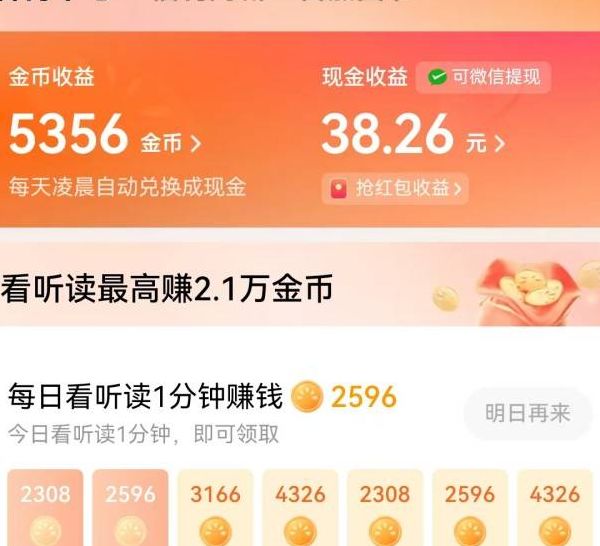 番茄小说和抖音极速版同属一家公司,但金币兑换比例差异明显,番茄小说为33000:1。按收益来看,它在看广告挣钱app中不算突出,单日收益通常只有1-2元。我推荐它的原因是,番茄小说有“看听读赚金币”任务,可边听小说边赚钱——将app挂在后台自动播放刷时长,还能同时做其他事。