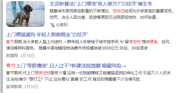 以宠物喂养为例,今年开年就曾登上热搜:春节期间有人靠宠物上门喂养服务赚取了上万元报酬。虽然并非人人都能达到这个收入水平,但春节期间赚几百上千的外快,也是非常不错的。